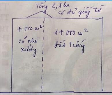 Diện tích: 2,1ha trong đó 1,4 ha đất trống và 7000 m2 xưởng